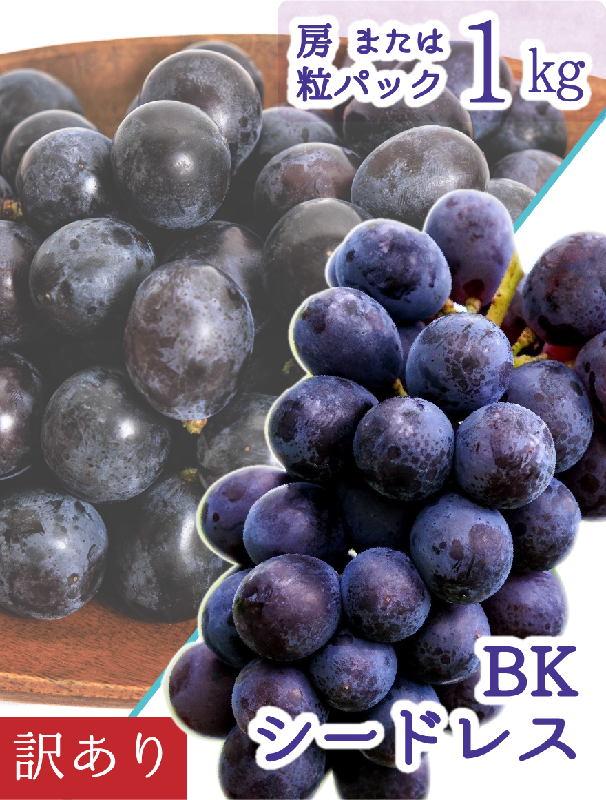 選別で規格から外れたBKシードレス1kgをお届けいたします。
