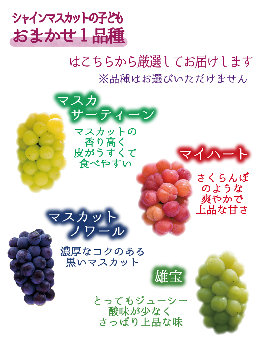 ★マイハートは、『ウインク』×『シャインマスカット 』 から生まれました。赤色の皮ごと食べられる上品な甘さのマスカットです。