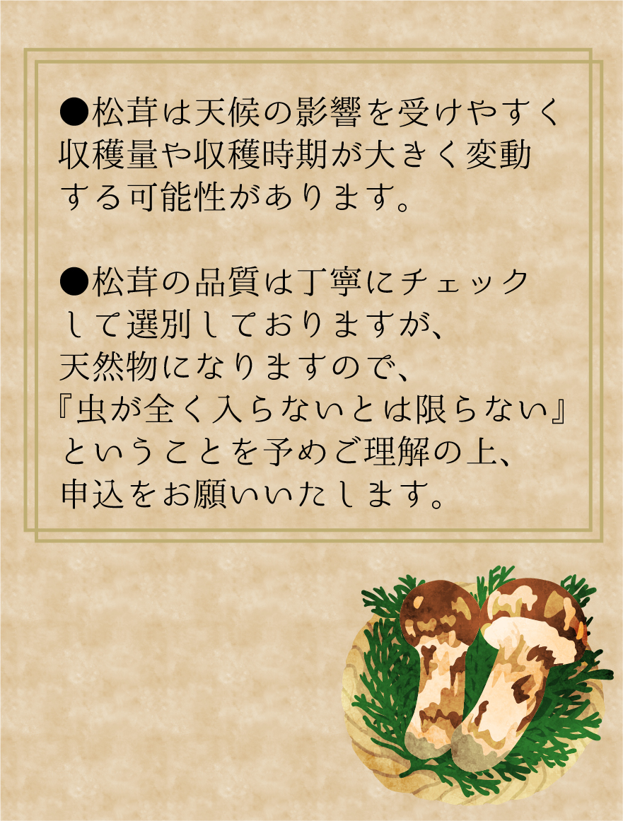 ※松茸は天候の影響を受けやすく、収穫量や収穫時期が大きく変動する可能性があります。