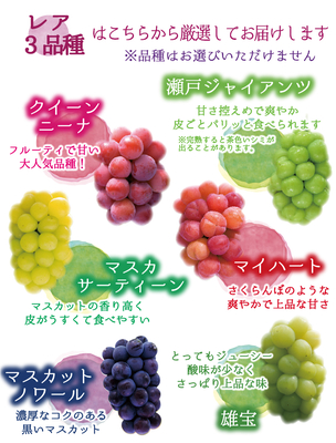 シャインマスカットは必ず入ります。残り3品種は、希少6品種から3品種を厳選します。